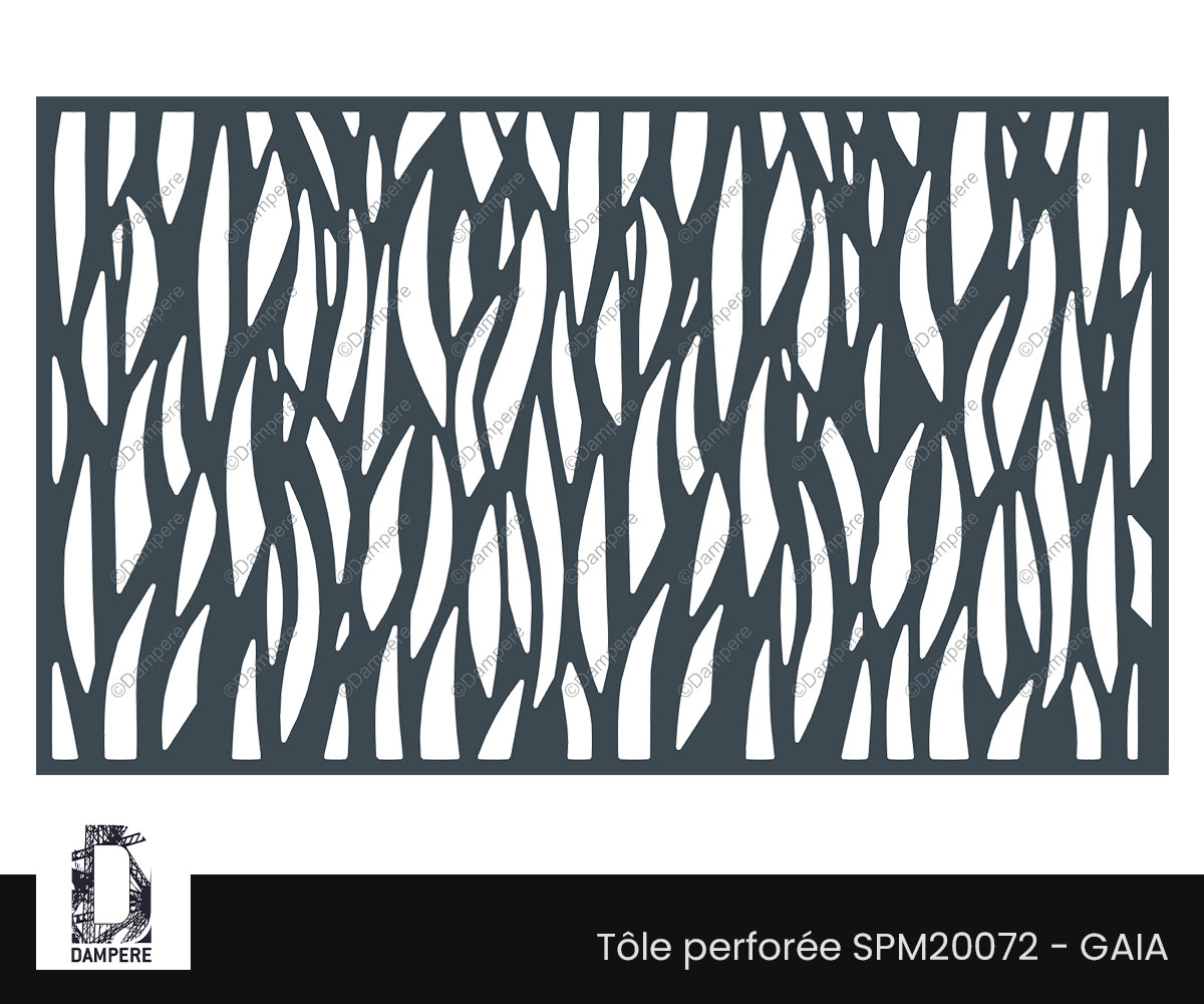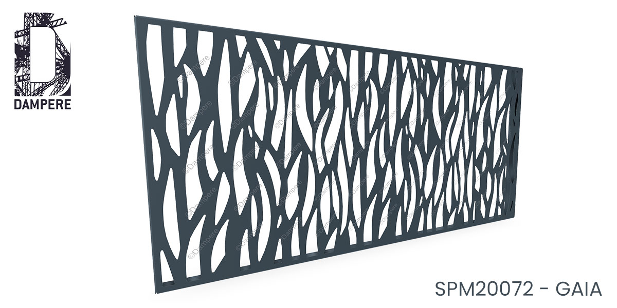 La tôle décorative Gaia de DAMPERE libère l’imagination à travers un motif organique réalisé par découpe laser, qui évoque des éléments naturels tels que les flammes, les herbes folles, ou encore des fissures dans le bois. Le motif, avec ses formes fluides et abstraites, capte une sensation de mouvement et de vie. Qu’il s’agisse de l’élan d’une flamme dansante, du flux ondulant d’une plante aquatique ou du vent caressant les herbes, chaque élément du design propose une nouvelle interprétation. La force de ce motif déco en découpe laser réside dans la manière dont il permet à chaque observateur de lui prêter un sens différent. Certains y verront le feu, d’autres la force du vent, et certains pourront y percevoir la puissance brute de la nature. La découpe laser sur mesure rend possible une précision dans les formes, tout en offrant une transparence partielle, permettant au regard de glisser à travers les perforations ou de s'arrêter sur le premier plan du motif. Cette interaction entre les pleins et les vides crée une expérience visuelle riche qui évolue avec l'angle de vue et la lumière ambiante. La tôle décorative Gaia n’est pas qu’un simple élément de design; c’est une invitation à la contemplation. Le motif organique renforce l'idée de connexion avec la nature, intégrant le mouvement naturel dans les structures modernes, que ce soit en garde-corps, clôture ou panneau claustra de séparation. Ce design dynamique et vivant trouve sa place dans des environnements à la fois urbains et paysagers, où il ajoute de la profondeur et du caractère à l’architecture.Usages