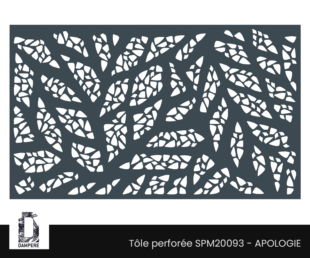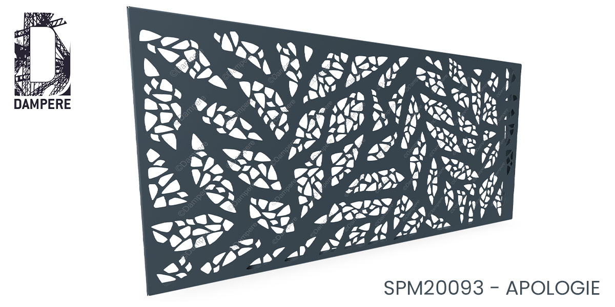 La tôle perforée décorative Apologie DAMPERE incarne un hommage raffiné à la nature, en représentant de larges feuilles ramifiées dont les veines et nervures sont finement détaillées par une mosaïque de dentelles perforées avec une précision remarquable. Ces dentelles en résille délicates, aux contours vifs et aiguisés, sont réalisées grâce à la technique de perforation Pito, qui permet de capturer toute la dynamique du motif végétal. Chaque feuille semble presque vivante, comme si elle était animée par un souffle invisible, reflétant un mouvement naturel et fluide. Le motif de la tôle brise-vue Apologie est conçu pour maximiser l'impact visuel tout en assurant une occultation élégante, créant un équilibre parfait entre transparence et protection. Les perforations en forme de dentelles permettent à la lumière de filtrer à travers les motifs, projetant des ombres graphiques et complexes sur les surfaces environnantes, ajoutant une dimension supplémentaire au design. Ce jeu subtil de lumière et d’ombres évolue tout au long de la journée, renforçant l’impression de mouvement organique et apportant une atmosphère apaisante et vivante à tout espace. Idéale pour des applications comme les garde-corps de balcon, clôtures décoratives, ou façades d’immeubles, la tôle perforée décorative Apologie s'intègre parfaitement dans des projets architecturaux contemporains ou des environnements naturels. Sa capacité à marier esthétisme et fonctionnalité la rend particulièrement adaptée aux jardins publics, aux résidences privées ou même aux bâtiments administratifs qui cherchent à créer un lien harmonieux entre architecture et nature.Usages