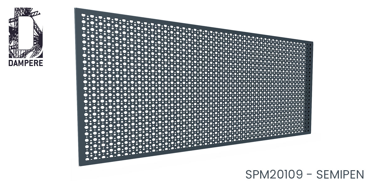 Le moucharabieh Semipen évoque un équilibre entre rigueur industrielle et mouvement fractal, en s’inscrivant dans une esthétique moderne, épurée et répétitive. Sa rythmique de perforation soutenu, en fait une solution de choix pour les projets cherchant à marier transparence, texture et géométrie avec sobriété.