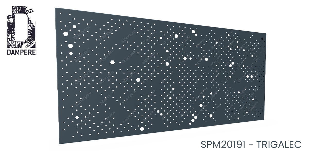 En tenant compte de son faible taux de transparence à 13 % qui privilégie l’occultation et la confidentialité, la perforation Trigalec est polyvalente, pensée pour les usages où l'opacité est recherchée sans renoncer à la lumière ni au détail graphique. Le décor en acier s’impose comme une alternative design à la tôle pleine, offrant à la fois protection visuelle et élégance textile.